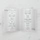 Pretty with white flowers and silver wedding rings. When you and your future spouse start your march down the aisle, make sure your friends and family are prepared to celebrate each step of your journey with these elegant, folded wedding programs. This beautiful program card is all ready to be personalized. Personalize the card by changing the text in the fields provided on all pages. You can change font style, size, and colour, as well as paper type and style.