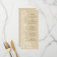 Add that extra special touch to your wedding with these beautiful menus. This design features a tanbackground, white classic typography, and white floral border.