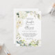 With a popular neutral colour scheme of white roses and hydrangeas with trailing eucalyptus and greenery, this unique wedding invitation has a QR code on the back of the all-in-one invitation to provide your wedding website information. Wedding guests can RSVP and view all the details surrounding your wedding events, schedule, hotel accommodations, reception info and more. The economical all-in-one invitation has all of your information contained on the invitation so as not to require an RSVP or enclosure card. The flowers on this popular design include soft watercolor roses, hydrangeas and matching mixed florals in an open wreath surrounding your text. The text pairings used in this layout feature the bride and groom's names prominently using a handwritten type face blended with an ever popular serif. Personalize the easy text template with your wedding details.