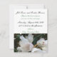 A beautiful flowering bush with light white blossoms accented by deep green foliage. A white background allows the text to stand out. Customize with all of your wedding information.