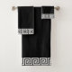 Elegant white Greek frame Pattern on black Towels.