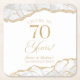 Elegant White Gold Agate 70th Anniversary Party Square Paper Coaster