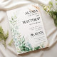 Elegant white gold brush greenery leaves wedding invitation