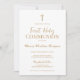 The white background provides a sophisticated and timeless backdrop for the invitation, while the faux gold details and typography add a touch of elegance and symbolism. The gold cross serves as a focal point, representing the sacred nature of the First Holy Communion.