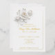 Invite family and friends to gather in remembrance with this elegant white and gold floral memorial invitation. The design features sophisticated white sculpted flowers highlighted with delicate gold foil accents, creating a refined and respectful look suitable for a memorial service, funeral reception, or celebration of life.