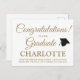 Fully customizable faux gold text, white solid plain background. With one graduation cap topper.