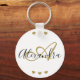 Elegant White Gold Hearts Script Monogram Name Keychain