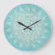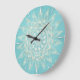 Elegant White Gold Mandala Sky Blue Design Large Clock