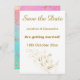 White and Gold Simple and Elegant Save the Date Card customizable and custom design with pastel marble reverse