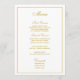 An elegant way to show your guests their menu options. In white with gold writing. An elegant script wedding font has been combined with a modern style all caps font creating a stylish, yet user friendly wedding menu.