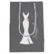 Elegant White Gown on Grey - Stylish Birthday Medium Gift Bag