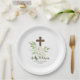 Elegant White & Green Floral First Holy Communion Paper Plate