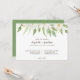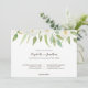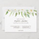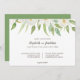 Bright and stylish, this wedding invitation is the perfect way to play your big day! The design features hand-painted watercolor white flowers with green leaves at the top. The back features a matching green background with white painted specks. All brown typography is customizable to fit the details of your wedding. Has matching accessories for weddings, birthdays, christenings, baptisms, funeral occasions and more.