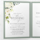 Elegant White Grey Green Meals Wedding Tri-Fold Invitation
