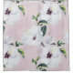 A delicate illustration featuring white hibiscus flowers with vibrant green leaves set against a soft pink background. The flowers are meticulously detailed, with subtle shading and pops of yellow in the stamens, adding to the natural beauty. The soft hues and elegant composition evoke a sense of calm and grace, perfect for nature-themed designs or floral art collections.
