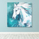 Stunning white horse painting on a calming blue background, ideal for horse lovers and unique home decor styling.