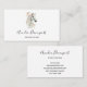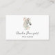 Business cards with a magical illustration of a beautiful white horse head. Surrounded by cute little pink flowers. Boho elegant vibe for horse lovers.