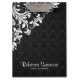 Elegant white floral lace swirls over black floral damasks pattern. For Event designers, wedding planners