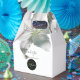 This design features white lily flowers. The beautiful elegant white lilies compliment the elegant black modern circle shape encircling the wedding date. A perfect fusion of modern and chic with green colour tones. Green, black and white are a perfect match for an elegant floral garden themed wedding. Unique wedding favour box design with modern elements. Matching wedding invitations and other stationery items are also available.