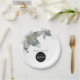 This design features white lily flowers. The beautiful elegant white lilies compliment the elegant black modern circle shape encircling the wedding date. A perfect fusion of modern and chic with green colour tones. Green, black and white are a perfect match for an elegant floral garden themed wedding. Unique wedding paper plate design with modern elements. Matching wedding invitations and other stationery items are also available.