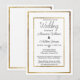 An elegant, minimalist white and luxury gold glitter glamorous Wedding invitation is perfect for any classy and sophisticated girl. This exquisite and dazzling gold glitter with a geometric gold double square center design is perfect for the trendy and stylish girly party event. Customize this design with your message and personalized information.