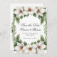 Celebrate your special day with this timeless and refined wedding invitation featuring delicate white magnolia flowers framed by lush pine greenery. The watercolor botanical artwork brings a soft, romantic touch while maintaining an elegant, minimalist feel. Fully customizable with the couple’s names, wedding date, venue, and details. Ideal for winter weddings, nature-inspired themes, or Southern garden ceremonies. Printed on high-quality paper and easy to personalize with your favourite fonts and colours.