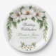 Elegant White Magnolia Winter Wedding Pine Tree Paper Plate