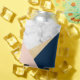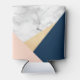 Stylish, modern and abstract geometric triangles colour block design featuring faux gold, marble, navy blue and light peach colour block.