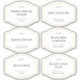 These elegant curved shape white pantry badges with a gold border accent, a sophisticated blend of vintage and modern design for your kitchen organization. These badges, sold in a set of 6, seamlessly combine subtle ornate details with a touch of luxury. The curved shape adds a vintage charm while the gold border provides a modern twist. Measuring approximately 3.5 by 2.5 inches, these badges offer a unique and visually appealing solution for categorizing pantry items.