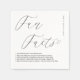 Make your wedding reception memorable with our elegant white napkins featuring personalized fun facts about the bride and groom. These stylish napkins are adorned with a delicate black thin script and a charming heart symbol, adding a touch of elegance to your special day. Perfect for cocktails, appetizers, or desserts, these napkins combine practicality with a personal touch. Customize with your names and unique fun facts to create a keepsake your guests will adore. Affordable and chic, these napkins are a must-have for any unforgettable wedding celebration.