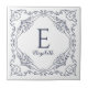Elegant White Navy Blue Decorative Name Monogram Tile