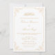Elegant White And Gold Vintage Islamic Muslim Wedding Invitation. The colour of this invitation card can be customized as well as the colour and type of the fonts by using Zazzle's easy-to-use menu. You can edit the name, date, address and the rest of the information. A blank white envelope is also included.
