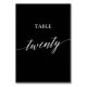 Elegant White on Black Calligraphy Table Twenty Table Number