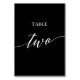 This elegant white on black calligraphy table two table number is perfect for a simple wedding. The neutral design features a minimalist card decorated with romantic and whimsical typography. The card prints on the front and back (double-sided). Other table numbers in the collection are sold separately.
