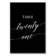 This elegant white on black calligraphy table twenty one table number is perfect for a simple wedding. The neutral design features a minimalist card decorated with romantic and whimsical typography. The card prints on the front and back (double-sided). Other table numbers in the collection are sold separately.