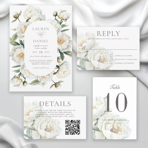Elegant White Peonies Watercolor Floral WeddingConçu par Susan Frazier