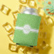 Elegant White Polka Dots on Green Monogram Can Cooler
