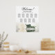 Ce somptueux tableau de sièges mariage contient 9 tables et présente un design romantique avec un seul rose à long tige en ivoire, blanc ou crème reposant sur son côté et réfléchissant dans un bassin d'eau. Le titre, "Bienvenue - s'il vous plaît trouver votre table," est affiché au-dessus du nom du couple et de la date du mariage. Avec des places pour 90 personnes et 10 places par table, ce tableau offre suffisamment d'espace pour que les clients puissent trouver facilement leur place. Le design sophistiqué, élégant et chic ajoute un élément de grâce et de classe à votre réception de mariage.