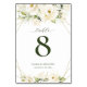 Elegant White Rose and Gold line Wedding Table Number