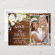 Elegant White Roses and Lace Rustic Save the Date Postcard