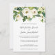 Elegant floral wedding invitation with a top border featuring hand painted watercolor white roses and greenery and your names in a lovely handwritten script. The backside is a solid green and may be changed to any colour you wish. These invitations are perfect for an outdoor garden wedding in the summer.