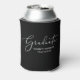Chic black can cooler to toast the graduate at her graduation party featuring "graduate" in an elegant white script and her name in simple white modern typography.