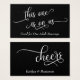 Offer your guests some complementary libations with these versatile drink tickets. Whether your wedding reception or another festive event, these vouchers are useful in any circumstance in which simple elegance are in order. // On one site you read "this one is on us" and "Good for One Adult Beverage" and on the other side is "cheers" and a template place holder for the hosts' names. Non-editable text graphic overlays are rendered in an elaborate, gorgeous calligraphy script font with swirls and flourishes. Other text appears in italics in a versatile serif typeface that can be changed if you wish. All text is in white and the editable background is black; change it to any colour you like, or even add your own background colour! Please do not hesitate to reach out if you have requests or need customizing assistance.
