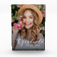 Elegant acrylic photo block graduation keepsake featuring your favourite photo, Graduate and your name and Class of in chic white lettering. Perfect for yourself or as a gift to parents and grandparents.