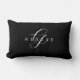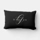 Elegant White Script Monogram & Grey Name on Black Lumbar Pillow
