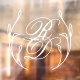 Impress your guests with this chic wedding window cling by JessicaAmber. This sticker features an elegant white monogram of 2 overlapping ornate script letters, within a minimal line-art wreath. The font's name is Flemish. Apply this cling to the window of your venue, or on a decorative mirror.
