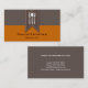 A velvety mocha brown and bold pumpkin coloured stripe background adorned with a white knife, spoon and fork logo. Perfect business card for an executive chef, personal chef, caterer, restaurant or other food service company.