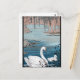 This vintage image has beautiful mother and baby white swans swimming in a lake in a forest nature scene. The illustration is done in blues, tans and whites. See my store Art by MAR for matching products with this design.