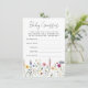 Invite guests to guess the baby's birth date, time, weight, and length with these elegant wildflower baby shower guessing game cards. Designed to coordinate with our Elegant Wildflower Meadow baby shower collection, the design features a handwritten script and watercolor wildflowers and foliage lining the bottom of the card in hues of pink, yellow, purple, blue, and green. The design is perfect for spring and summer baby showers. This floral baby shower guessing game card makes a beautiful keepsake for the mom-to-be!