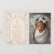 A neutral floral baptism or christening photo invitation with soft wildflower accents and a modern cross design. Fully customizable with your details.